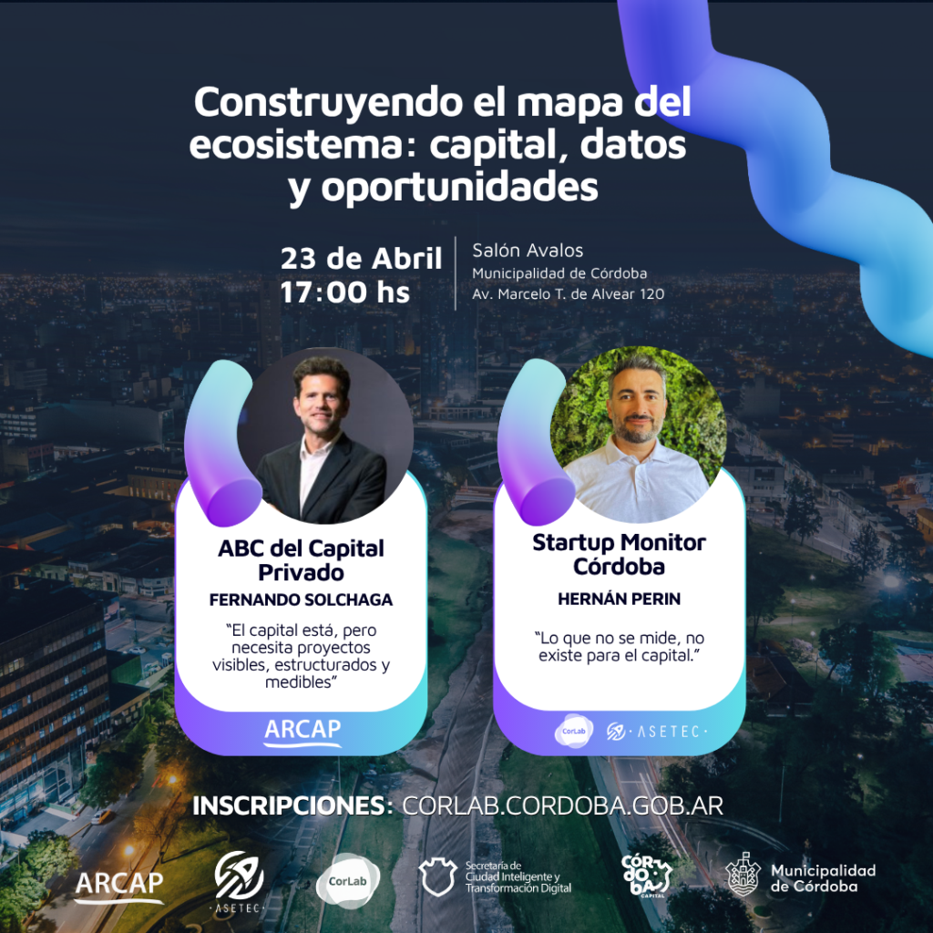 Además, Hernán Perin, Director General Govtech de CorLab, presentará el Startup Monitor Córdoba, una herramienta estratégica impulsada por CorLab de la Municipalidad de Córdoba y ASETEC que releva información del ecosistema local para fortalecer la toma de decisiones, mejorar el posicionamiento internacional y facilitar la atracción de inversión.