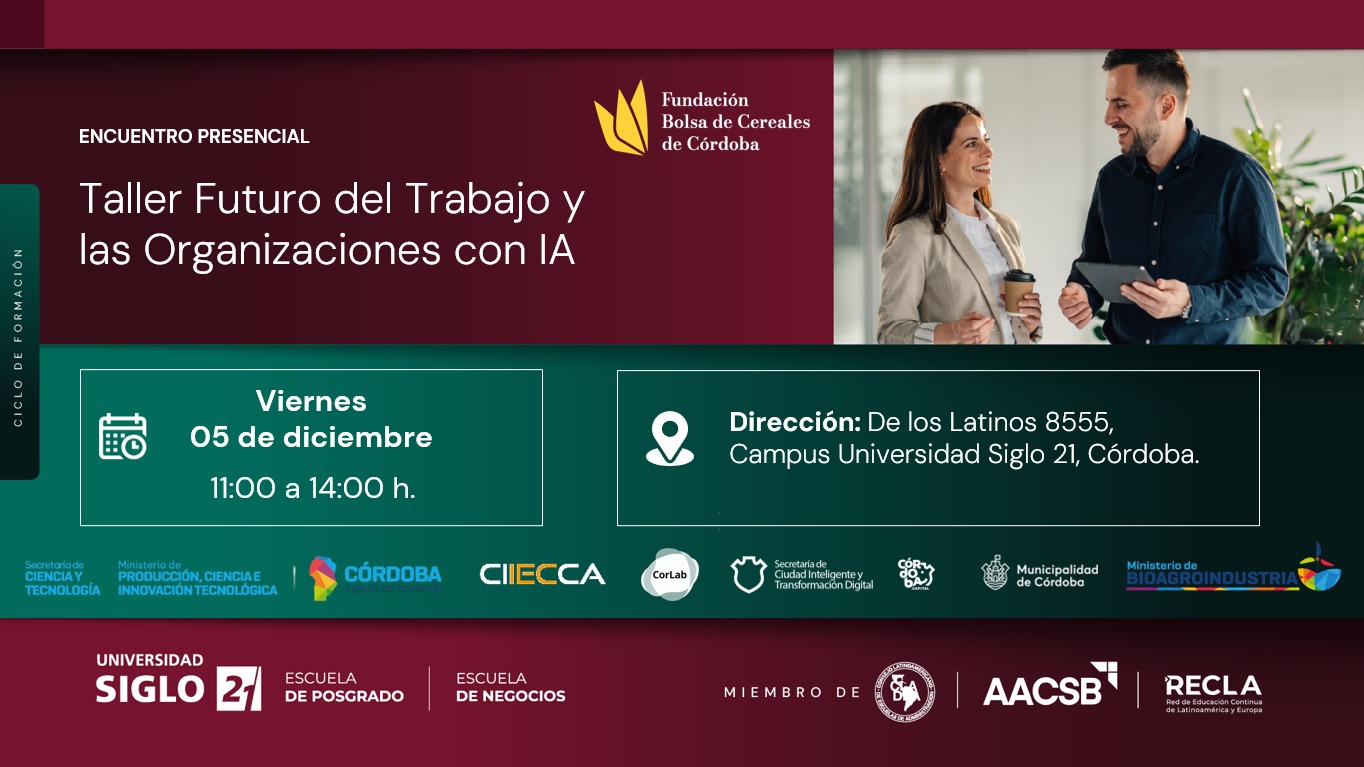 diciembre 5 @ 11:00 - 14:00 CMT Taller: El futuro del trabajo y las organizaciones con IA Córdoba, 5 de diciembre