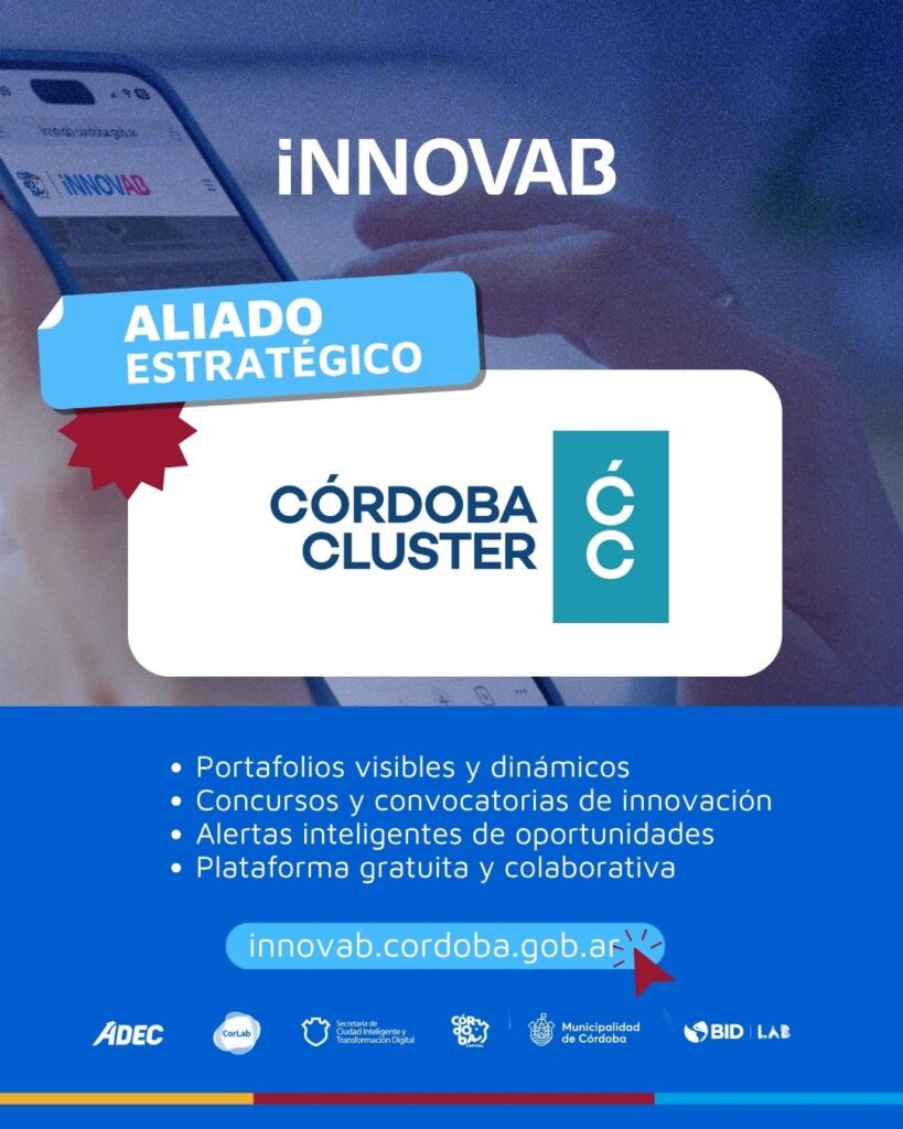 Córdoba Cluster, con más de dos décadas de trayectoria y más de 350 empresas e instituciones de la tecnología y la economía del conocimiento, se incorpora a iNNOVAB para potenciar la innovación y abrir nuevas oportunidades de vinculación. Esta alianza refuerza la visibilidad de las capacidades tecnológicas locales y consolida un ecosistema más dinámico y competitivo.